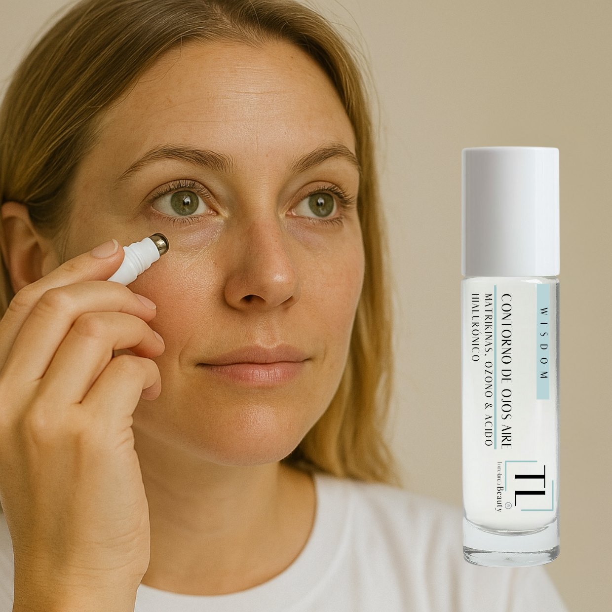 Aire combina matrikinas (señal de apoyo), tecnología inspirada en ozono (sensación de frescura) y ácido hialurónico (hidratación inmediata) para una mirada que se percibe más despierta y suave. Se absorbe rápido, no pesa y se integra perfecto bajo maquillaje. Un gesto breve que, con constancia, mantiene la zona en buena luz.
