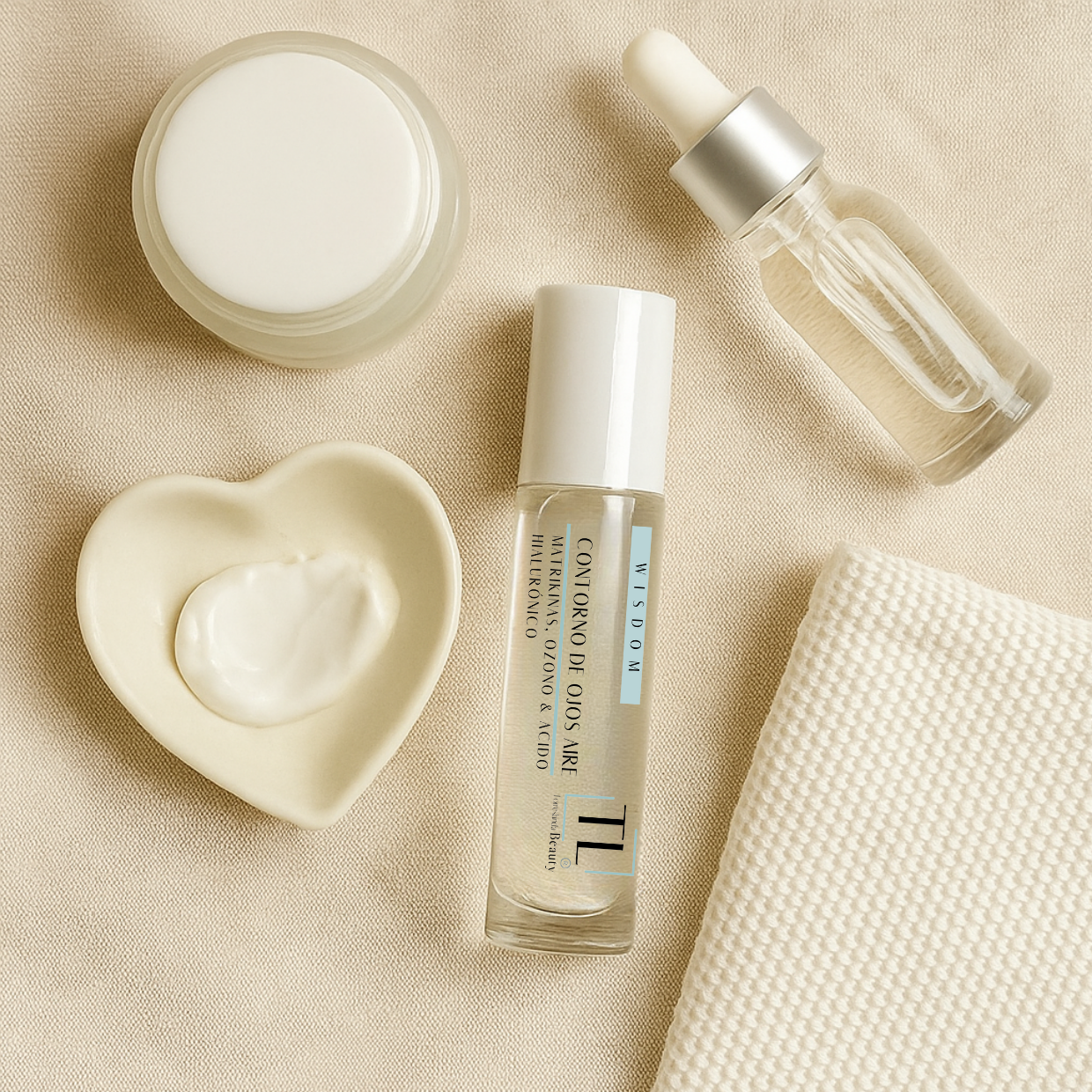 Aplica AM y PM, cantidad grano de arroz por ojo. Deposita con el anular y presiona suavemente desde el lagrimal hacia la sien. Espera 30–60 s antes de corrector o crema.